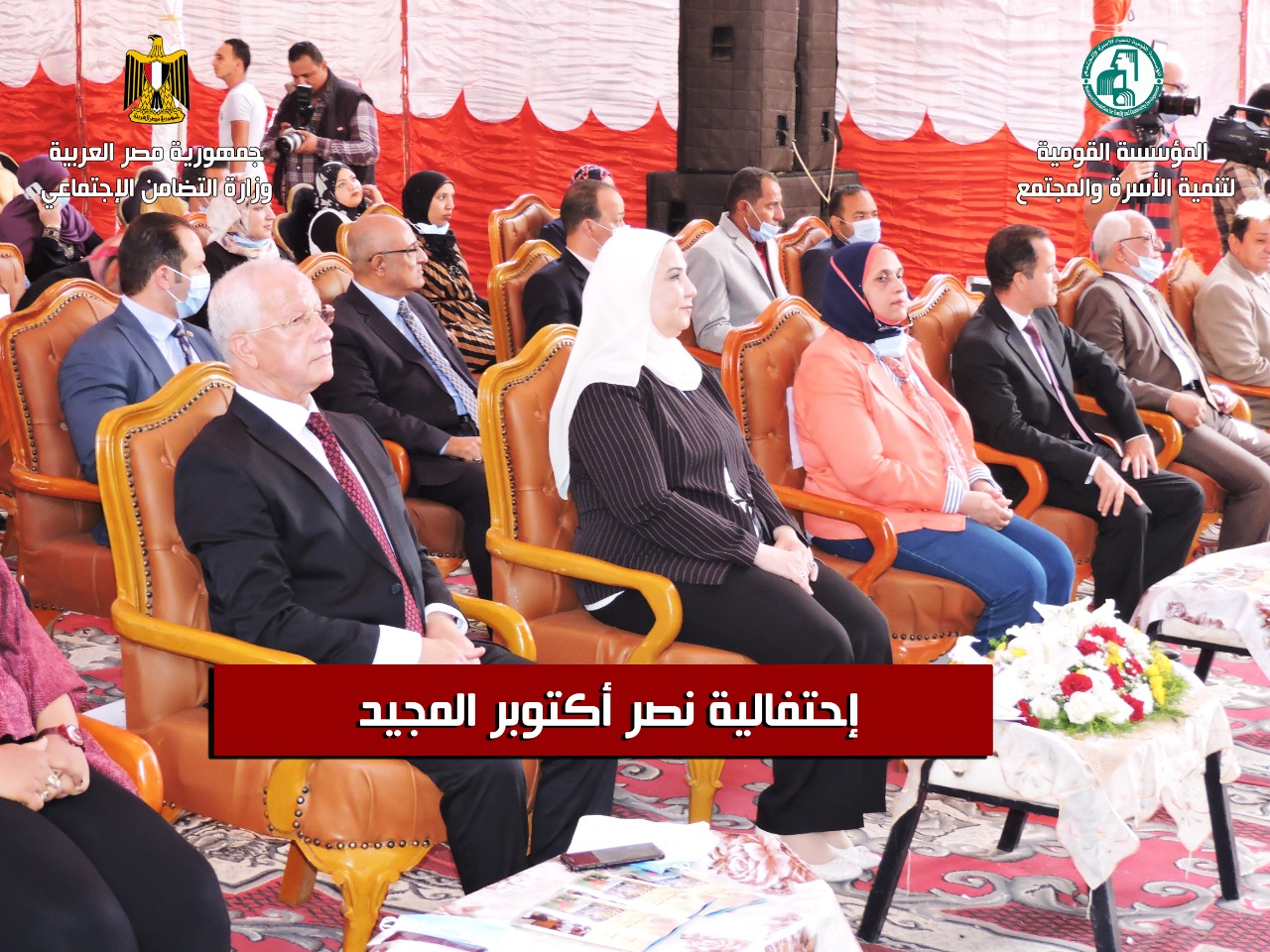 وشهدت الوزيرة احتفالية المؤسسة القومية لتنمية الأسرة والمجتمع بذكرى انتصار أكتوبر العظيم، كما كرّم اللواء عبد الحكيم حمودة وزيرة التضامن الاجتماعي بإهدائها كتاب الله "القرآن الكريم" تقديرا لمجهوداتها في رعاية الأولى بالرعاية.