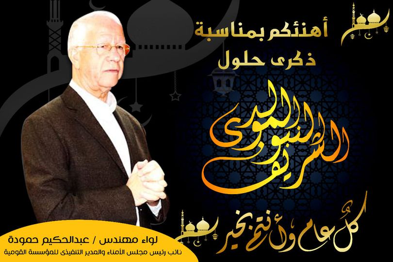 أهنئ جميع الساده العاملين بالمؤسسة القومية والمؤسسات التابعه بمناسبة حلول ذكرى الاحتفال بالمولد النبوي الشريف ... وكل عام وانتم بخير ..